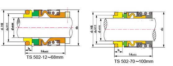 Уплотнение типа TS 502 стандартно сочетается с неподвижным кольцом BO(DIN24960), также предлагаются неподвижные кольца BP и BC
