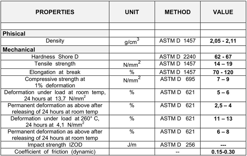Состав: 85% ПТФЭ, 23% углерода, 2% графита, рабочая температура: от -200 ° С до 260 ° С