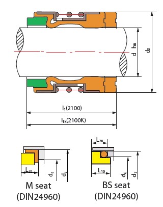 TS2100 - это прямая замена John Crane Type 2100. TS2100 - это стандартная рабочая высота, а TS2100K - для применений, требующих уплотнения с